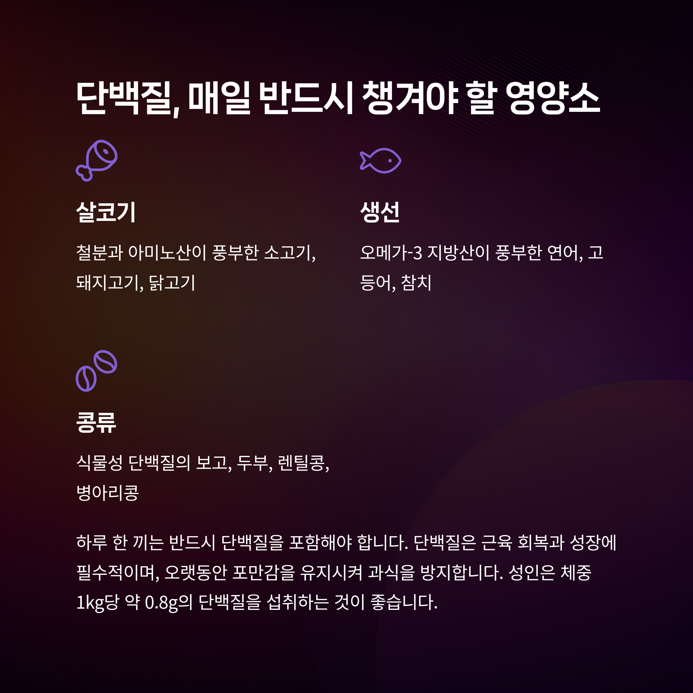 균형 잡힌 식단과 적절한 영양소 섭취로 일상 에너지를 확보하세요.
