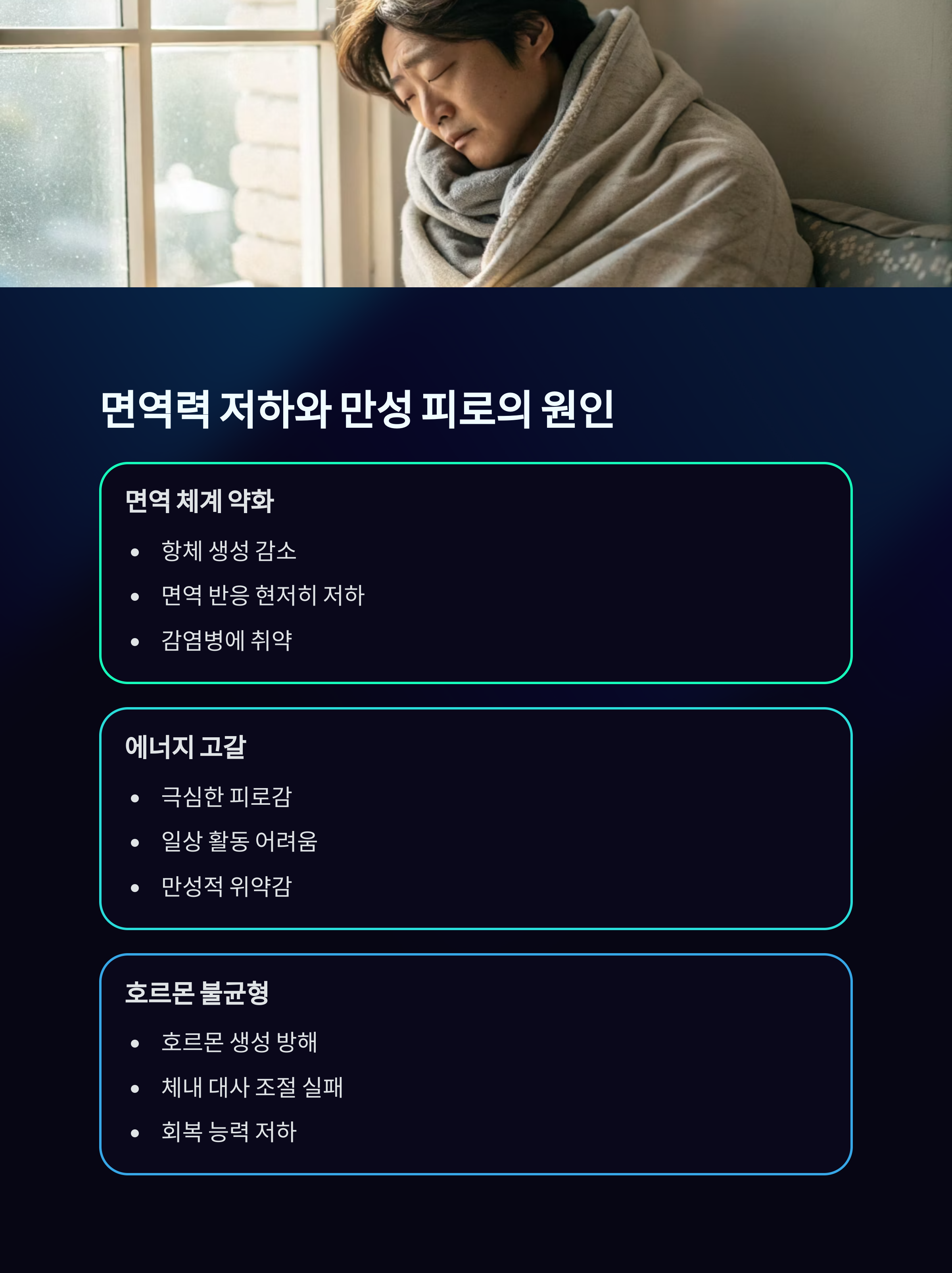 | 피로 | 에너지 부족 | 활동성 저하 | 균형 식단 |