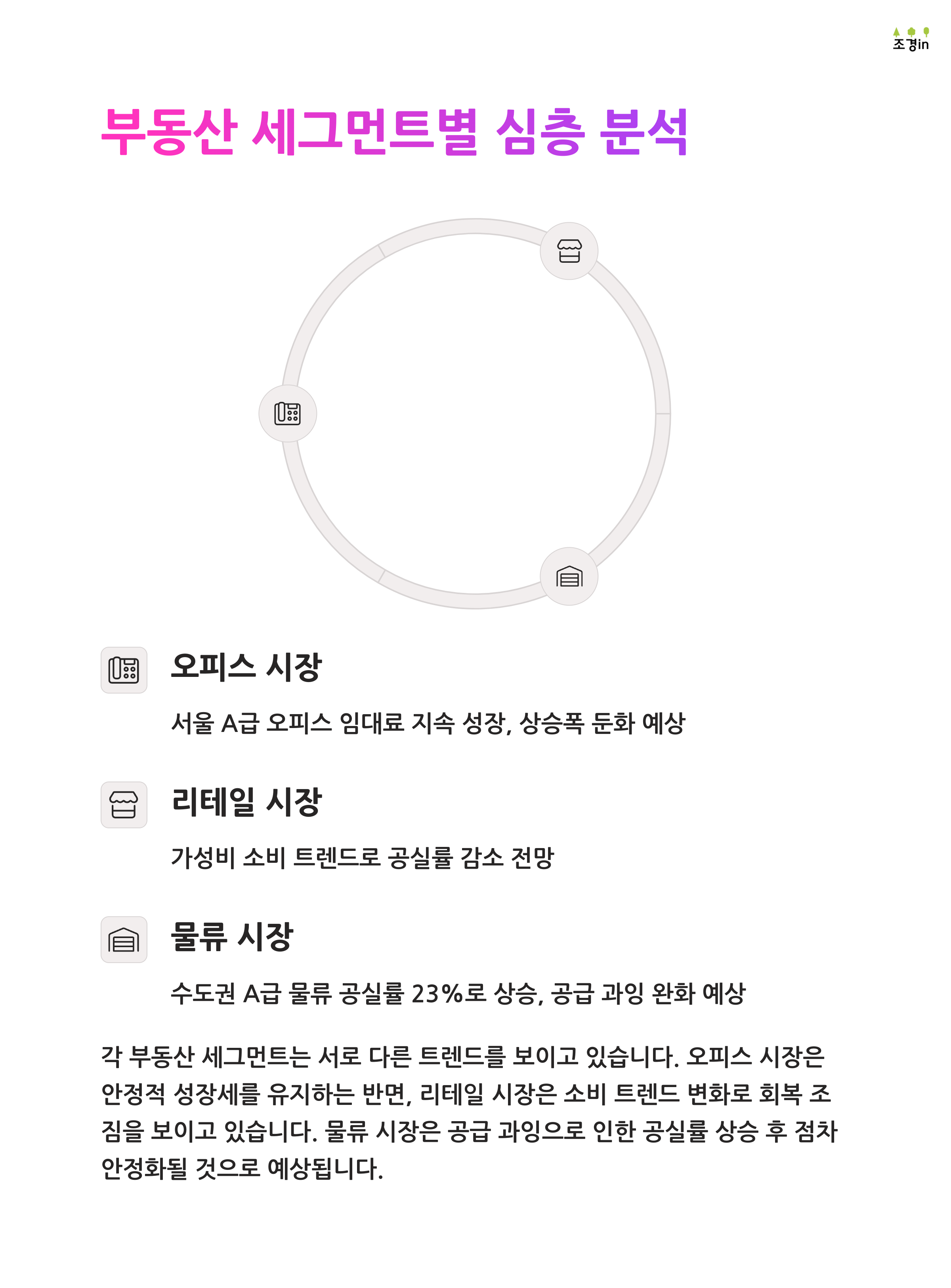 2. 상업용 부동산 중에서는 오피스가 가장 안정적인 투자처로 평가됩니다.