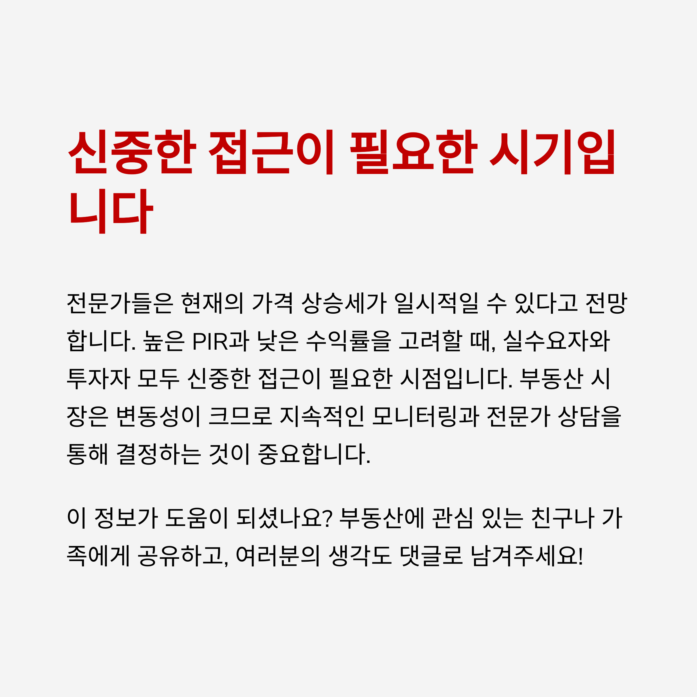 그러나 PIR 지수의 과도한 상승과 낮은 수익률은 투자 관점에서의 리스크를 경고합니다.