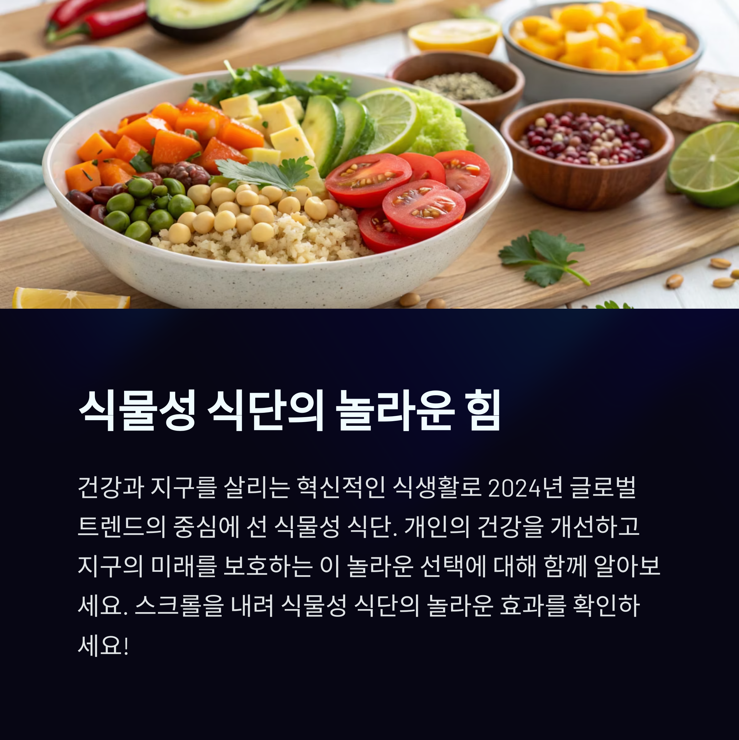 안녕하세요, 오늘은 식물성 식단이 주는 놀라운 변화라는 주제를 준비했습니다.