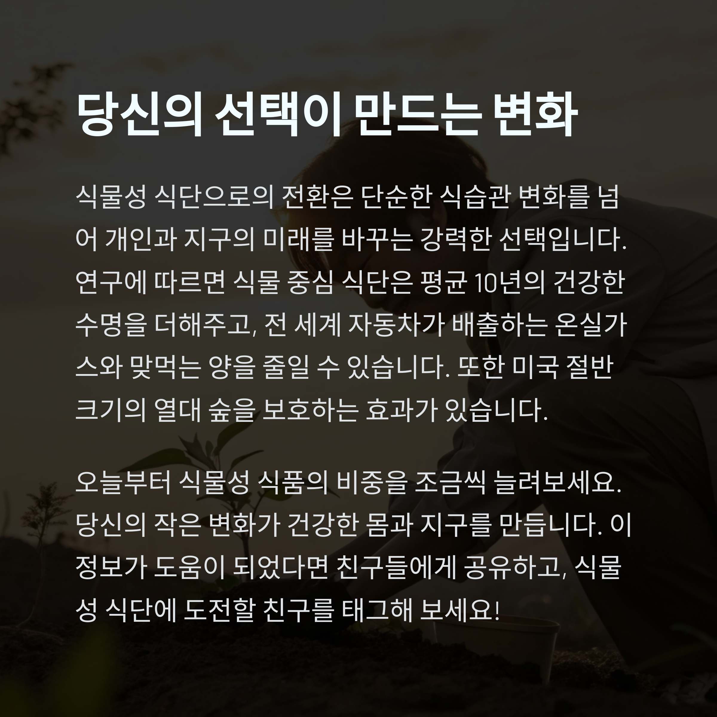 지속 가능한 세상을 위한 작지만 큰 변화는 바로 식물성 식단으로 시작됩니다.