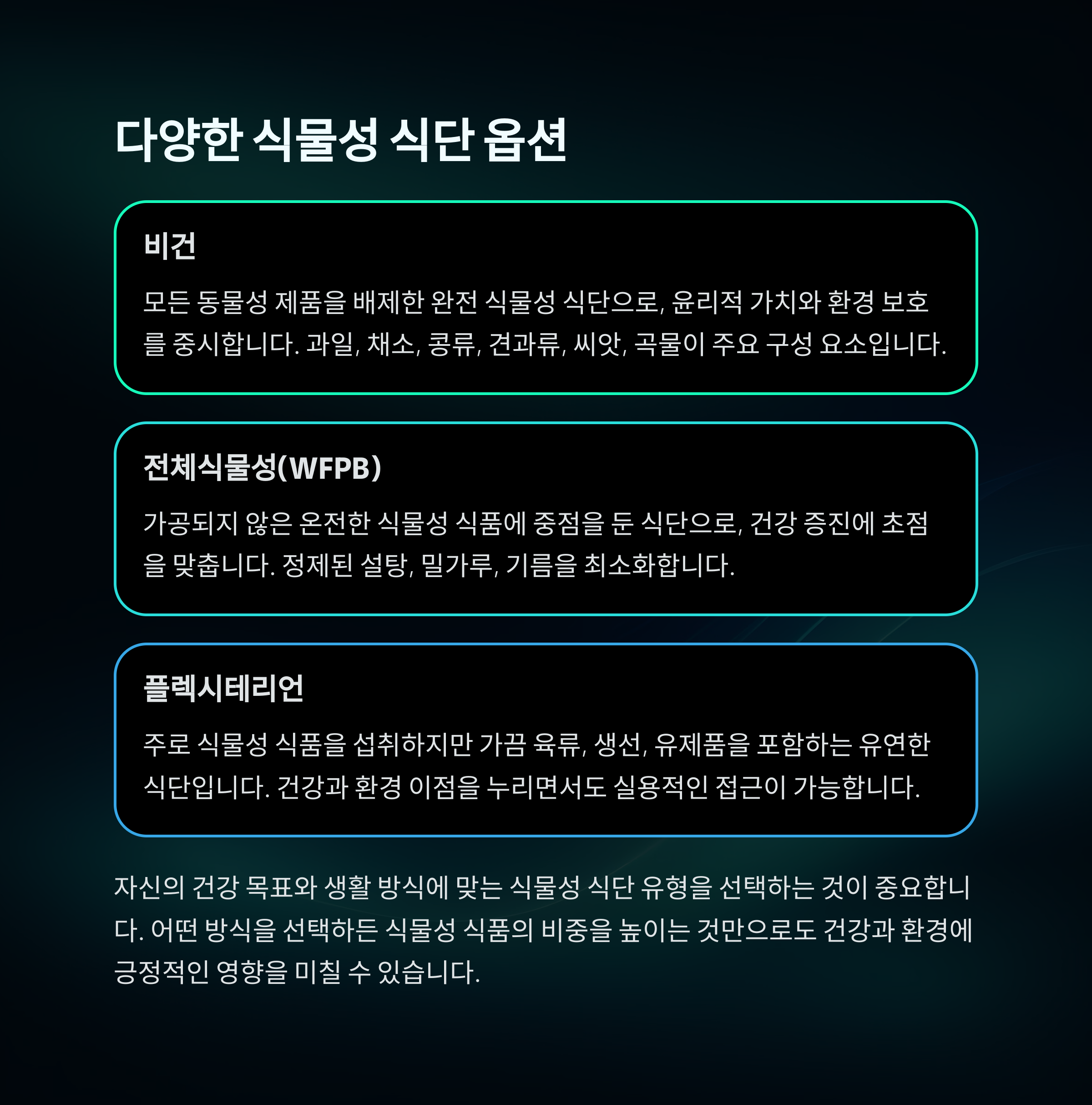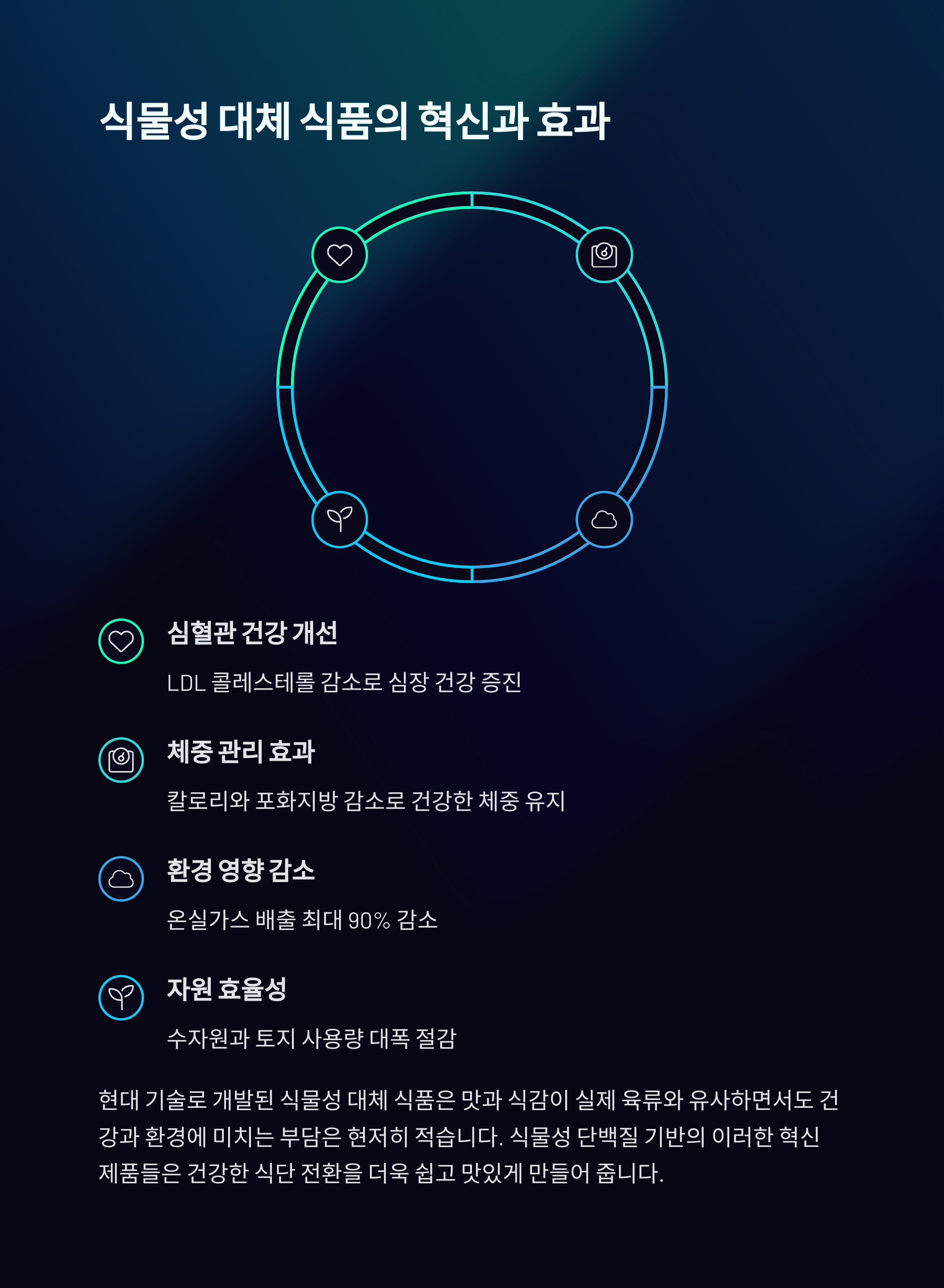 환경 측면에서도 식물성 식단은 탄소발자국 감소에 기여하며, 기후변화 완화에 필수적인 해결책으로 평가받습니다.