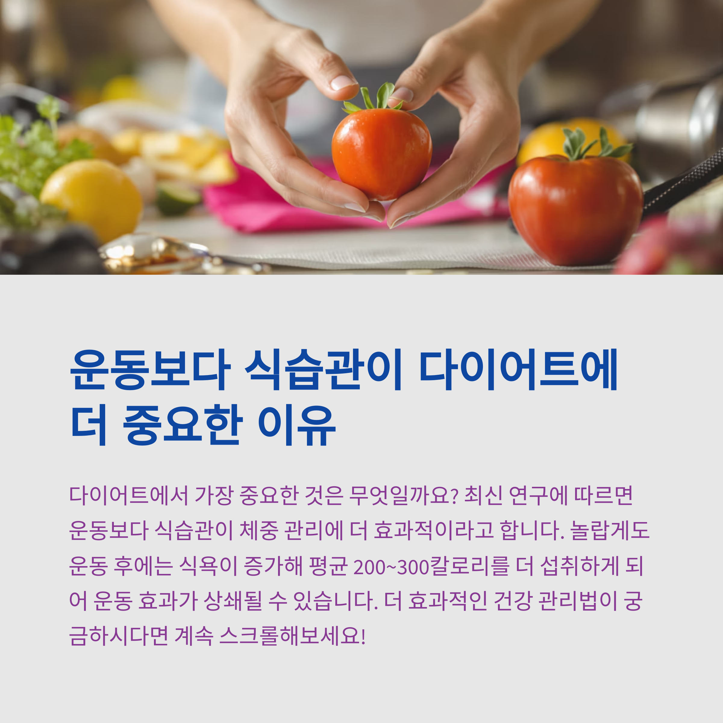 식사 습관은 운동 이상으로 체중 감량에 중요한 요소로 강조됩니다.