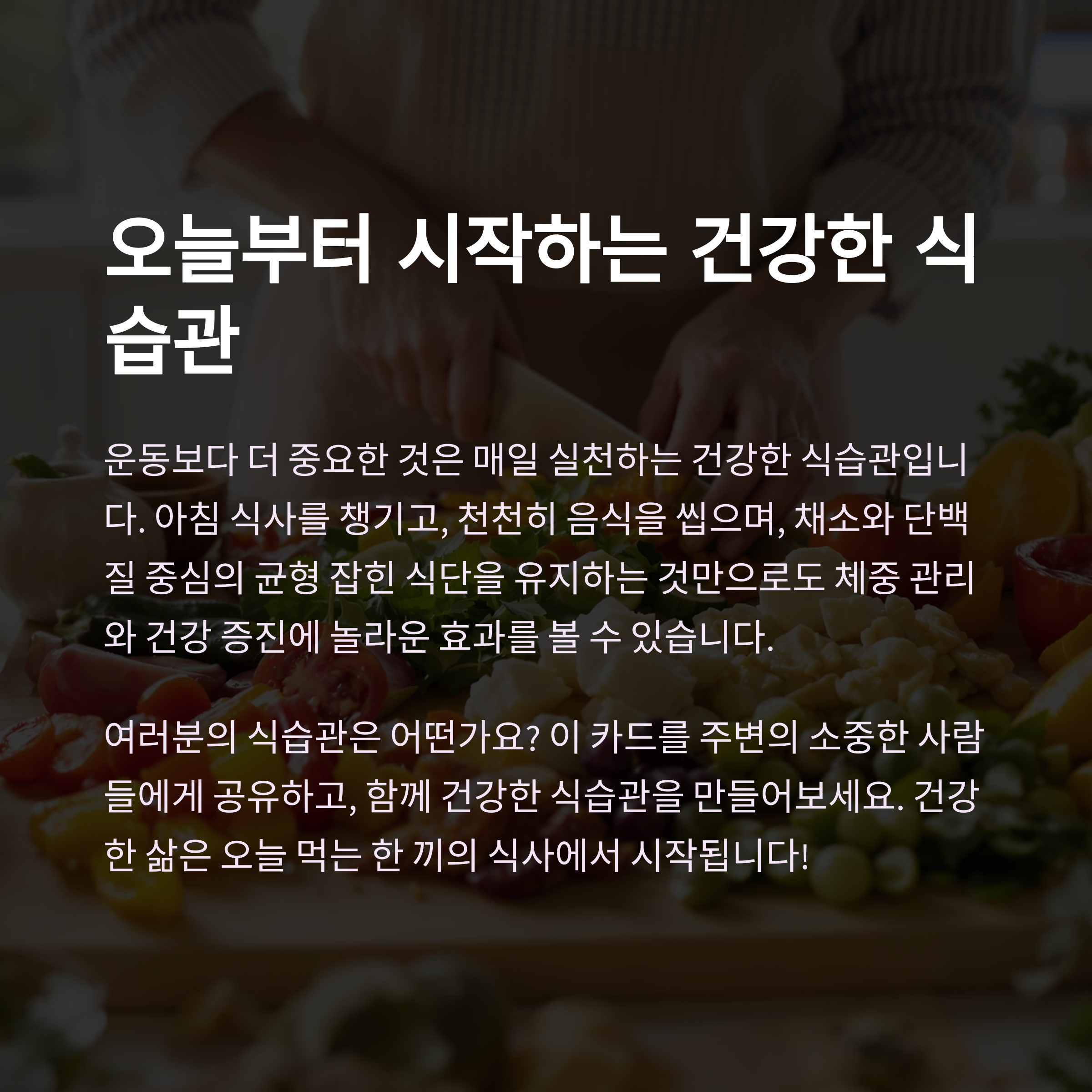 건강한 식사 습관은 단순한 체중 감량을 넘어 신체 기능 향상에도 매우 중요한 역할을 합니다.
