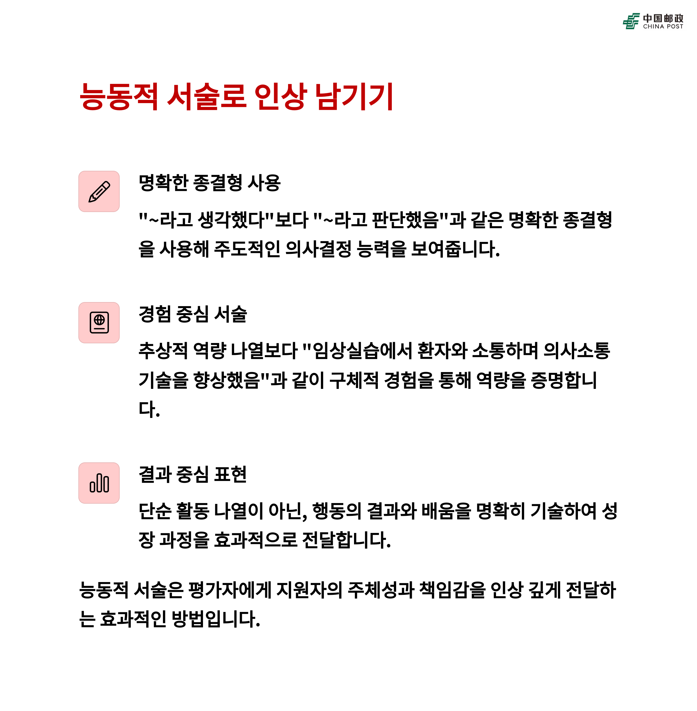 | 매우, 굉장히, 창의적인 | 과장, 추상적, 신뢰도 저하 | 근거 있는 사례와 결과 중심 표현 |