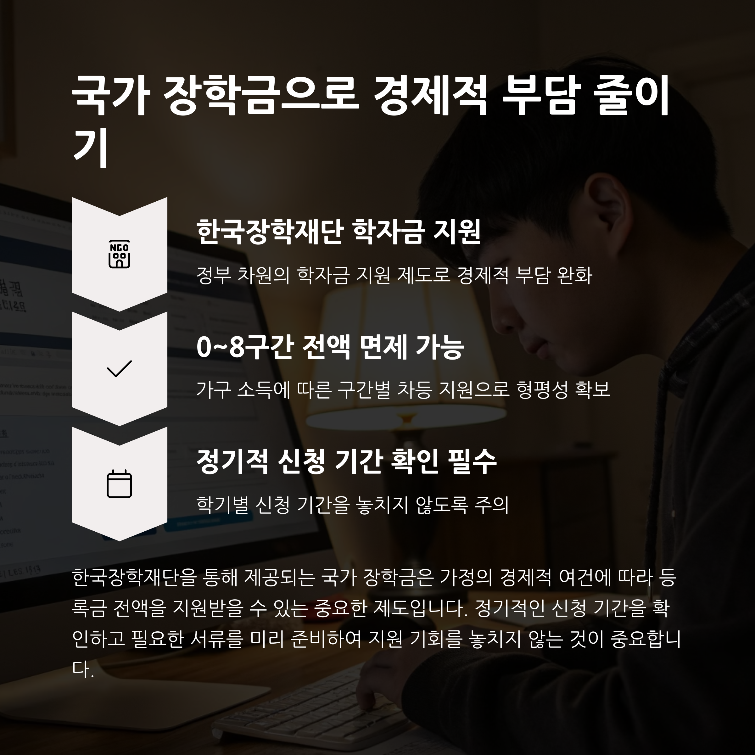 | 재수학원비 | 장학금 제도 | 국가 지원 |