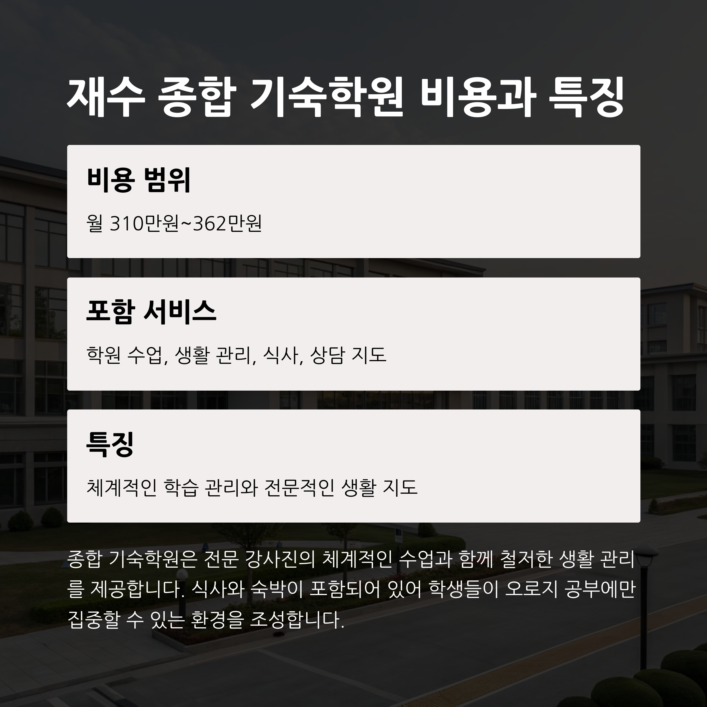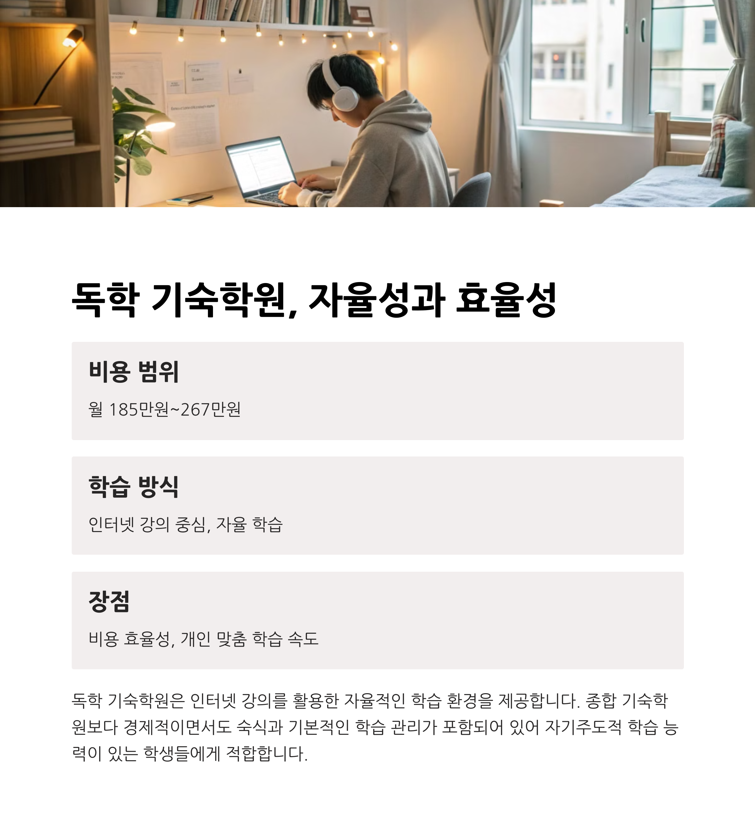 | 기숙학원 비용 | 재수학원 유형에 따라 연 2백~6천만 원대 차이 |