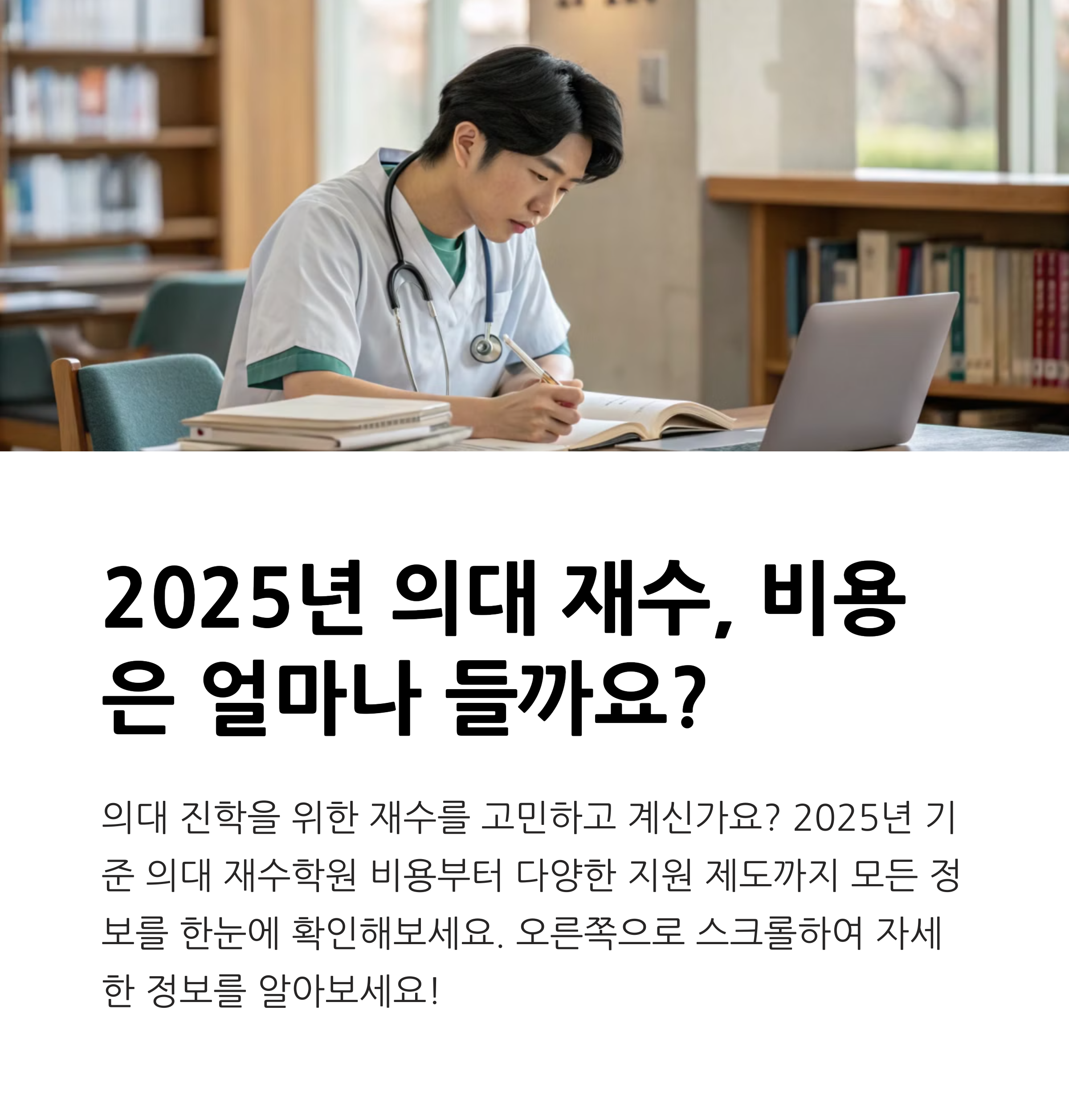 이 글을 읽고 궁금한 점이 있으셨나요? 또는 여러분만의 의대 재수 준비 팁이 있다면 아래 댓글로 자유롭게 공유해주세요. 함께 나누면 더 큰 도움이 됩니다!