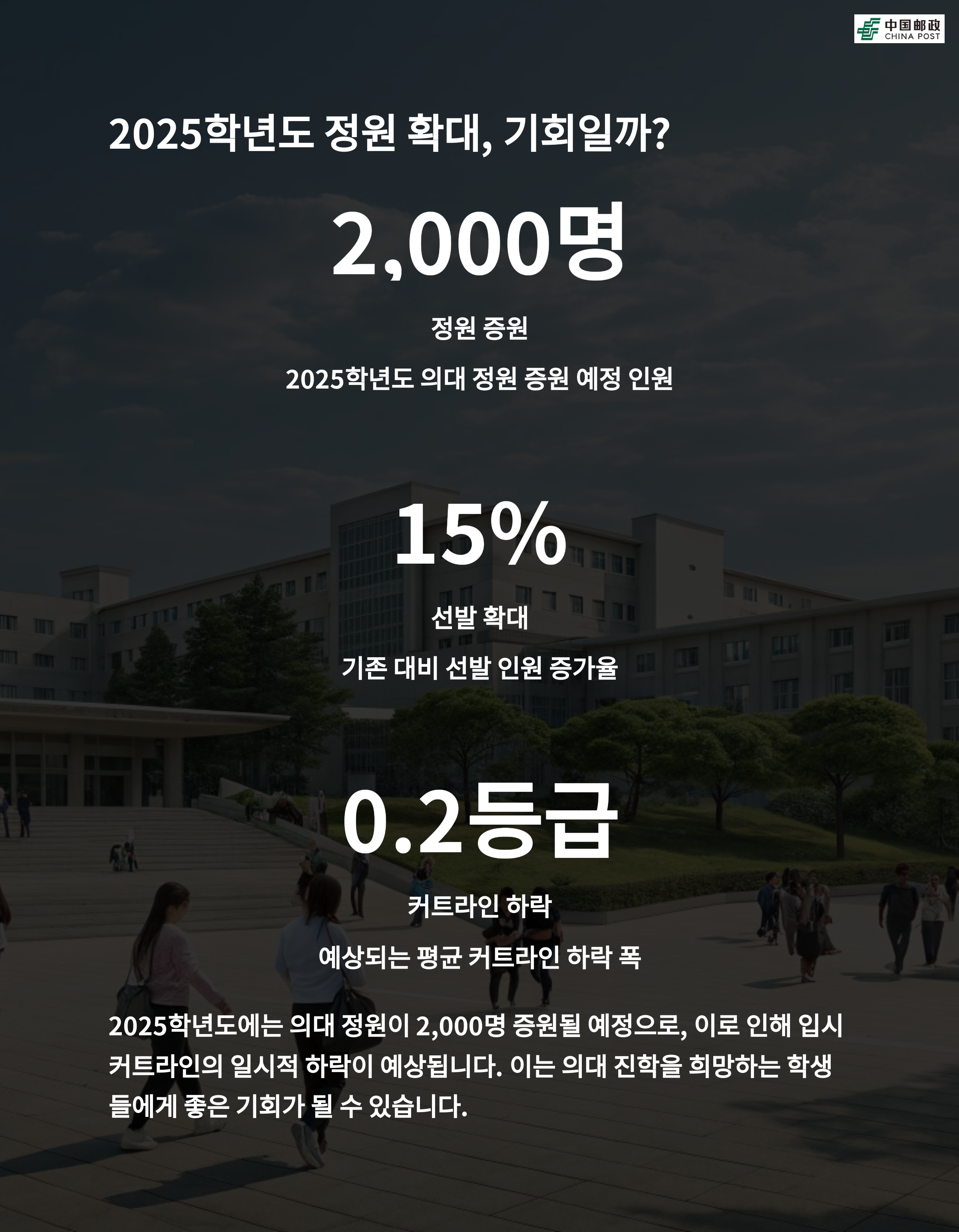 여러분은 2025학년도 입시 변화에 대해 어떻게 생각하시나요? 예상보다 커트라인이 많이 하락할지, 또 어떤 전략이 필요할지 댓글로 여러분의 경험과 생각을 나눠주세요!