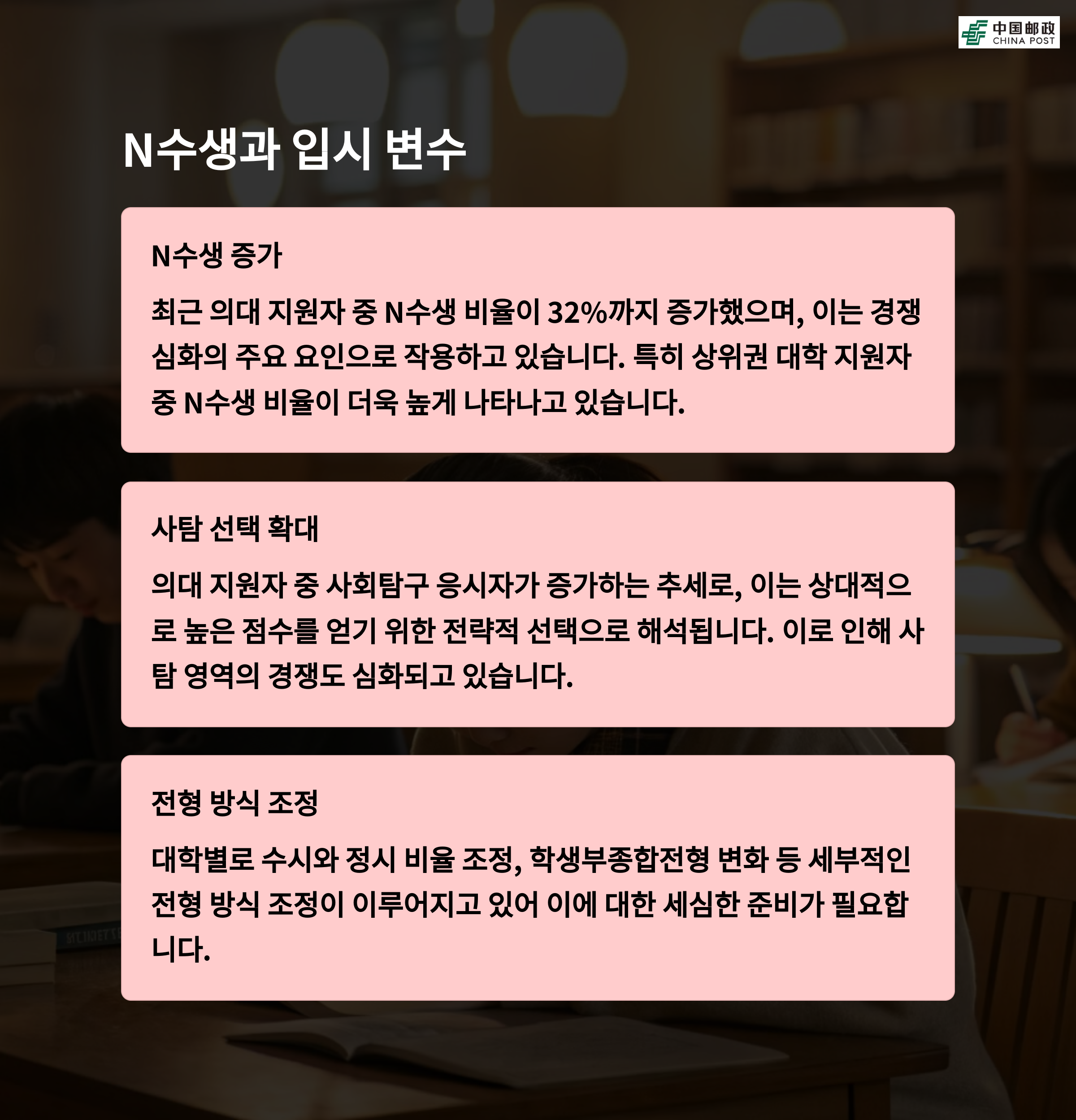 | 내신 상승 | 정시 하락 | 입시 변수 |