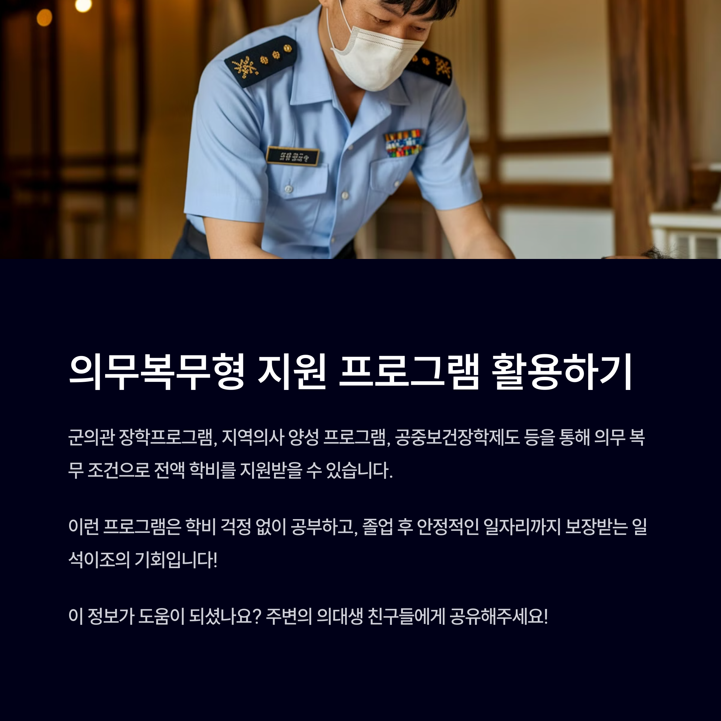 이런 프로그램을 활용하면 학비 부담을 줄일 뿐만 아니라 공공의료 분야에서 중요한 경험을 쌓을 수 있습니다.