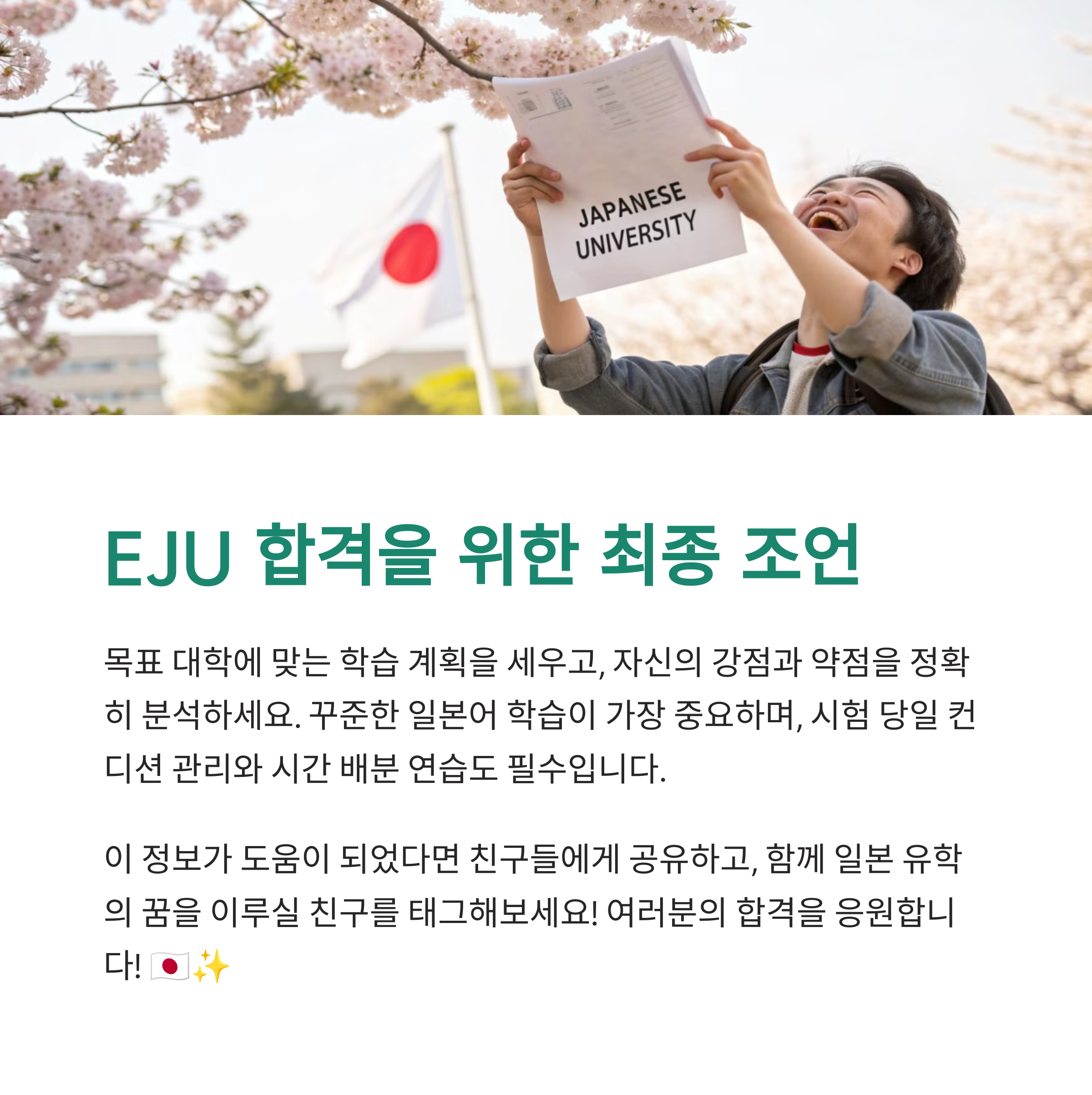 EJU 시험을 준비하면서 궁금한 점이 있다면 댓글로 남겨주세요. 여러분의 경험과 공부법도 함께 공유해 주세요!
