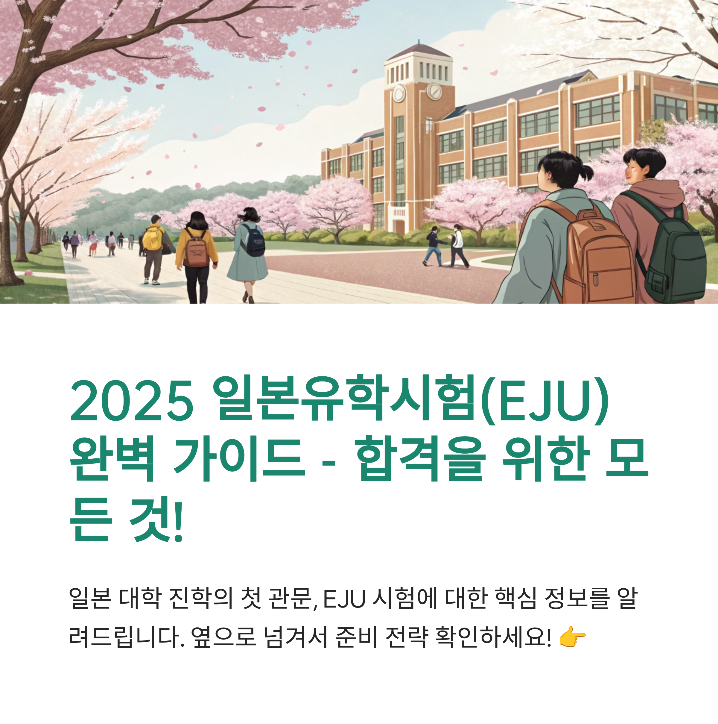 일본 유학을 준비하는 분들에게 EJU(일본유학시험)는 매우 중요한 과정입니다. 일본 대학 및 전문학교에 입학하기 위해 꼭 치러야 하는 이 시험은 일본어, 종합과목, 과학, 수학 등 다양한 과목으로 구성되어 있습니다. 효과적인 학습 전략을 세우고 정확한 정보를 파악하는 것이 성공의 열쇠가 됩니다. 이 글에서는 2025년 EJU 시험 일정과 과목 구성, 그리고 효과적인 준비 전략을 자세히 안내해 드리겠습니다.