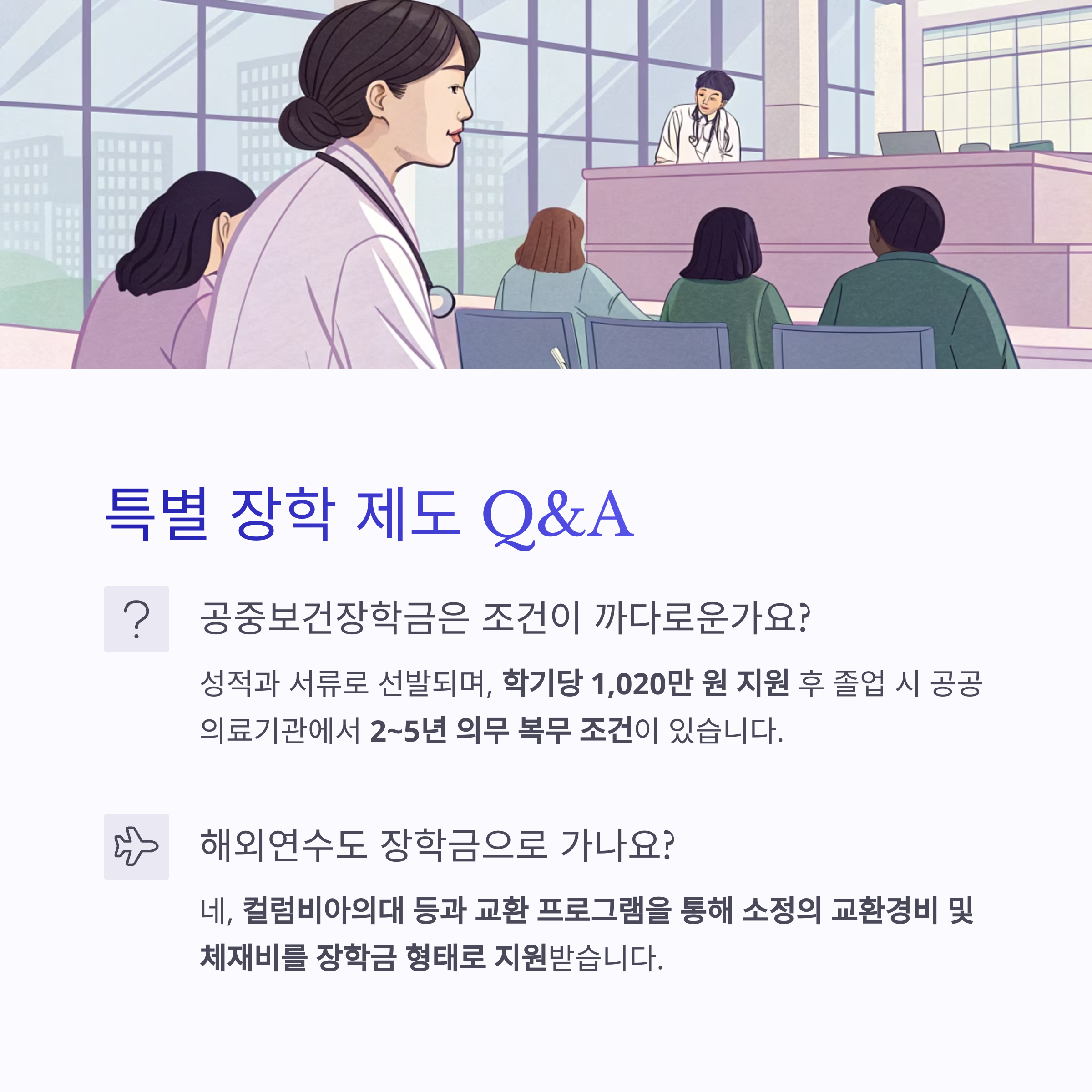 "Q. 공중보건장학금은 조건이 까다로운가요?"