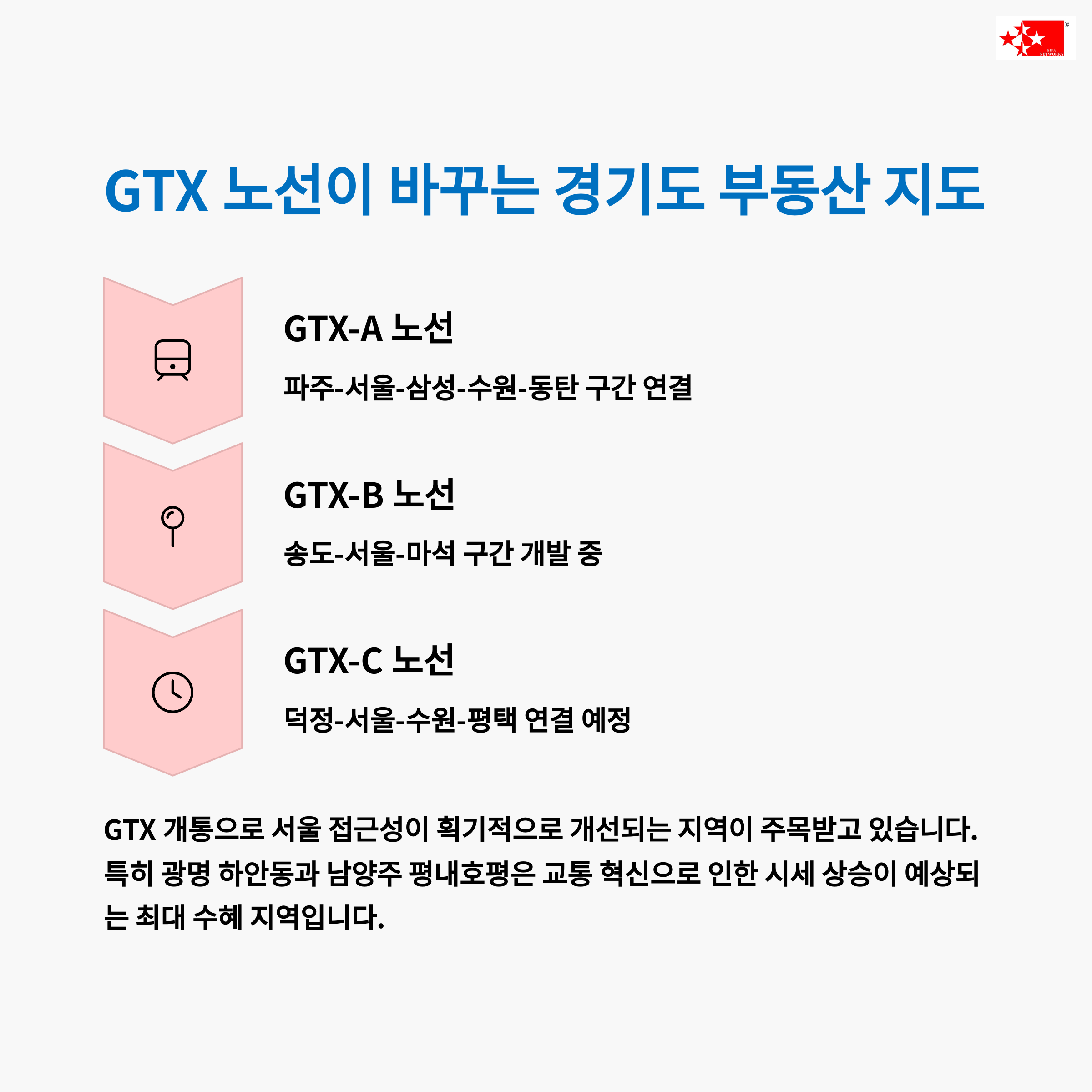 경기도는 서울에 비해 합리적인 가격과 넓은 개발 여지 덕분에 부동산 투자자들에게 꾸준한 관심을 받고 있습니다. 특히 2025년은 GTX-A·B·C 노선이 순차적으로 현실화되고, 대규모 택지 개발 및 재건축 프로젝트가 본격적으로 진행되는 시기로, 투자 타이밍의 중요성이 어느 때보다도 높아지고 있습니다. AI는 이러한 복잡한 데이터를 통합해 실제 수요·공급, 교통 인프라, 가격 변동 예측 등을 분석하고 단기 수익형 지역과 장기 가치 상승 지역을 명확히 구분해 투자 효율성을 극대화하고 있습니다.