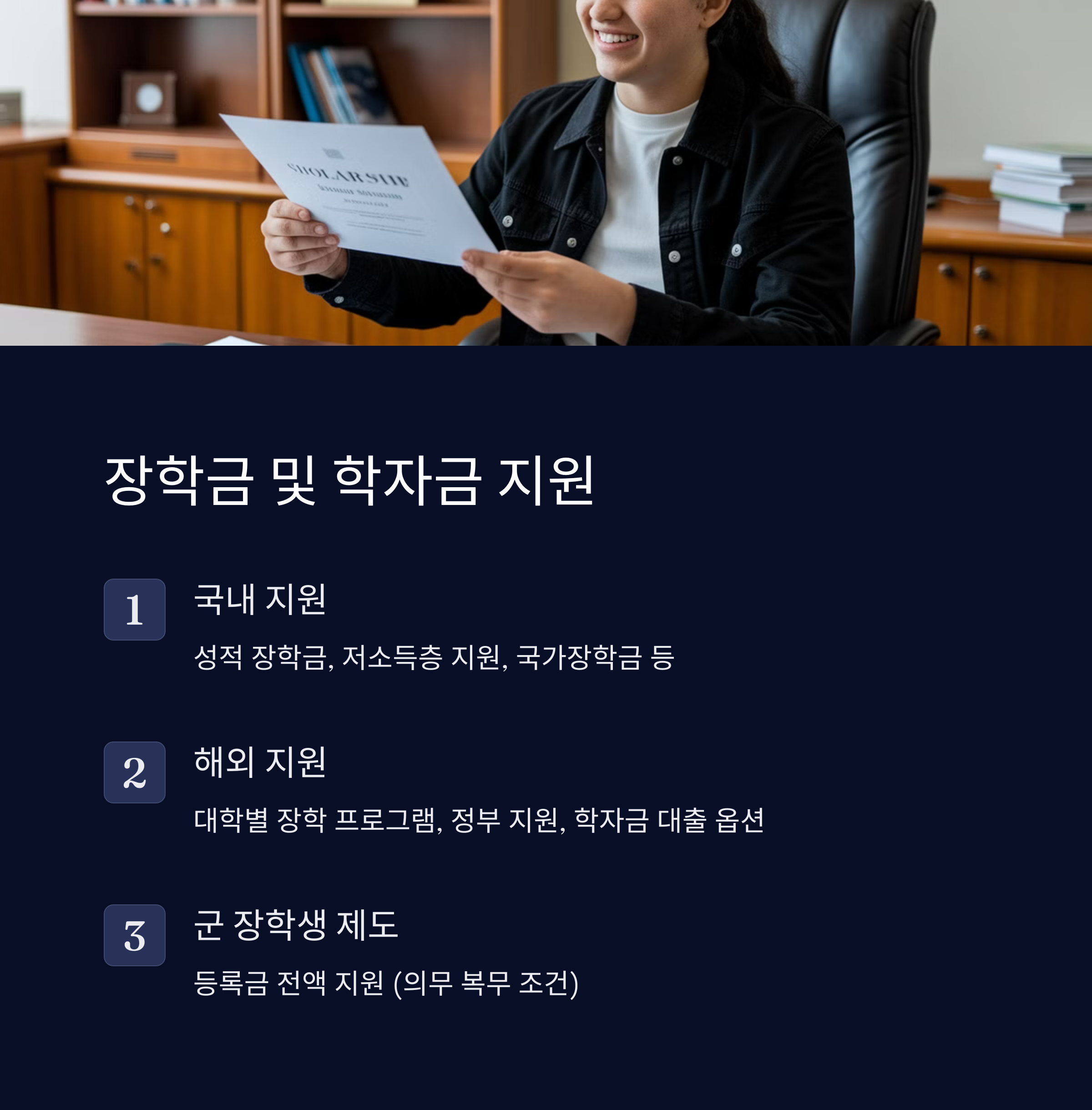 고액의 학비가 부담된다면 장학금과 학자금 대출을 활용하는 방법이 있습니다. 국내에서는 국가장학금, 성적 우수 장학금, 저소득층 지원금이 있으며, 해외 대학들도 다양한 장학 프로그램을 운영하고 있습니다. 대표적인 장학금 및 지원 프로그램을 알아보겠습니다.