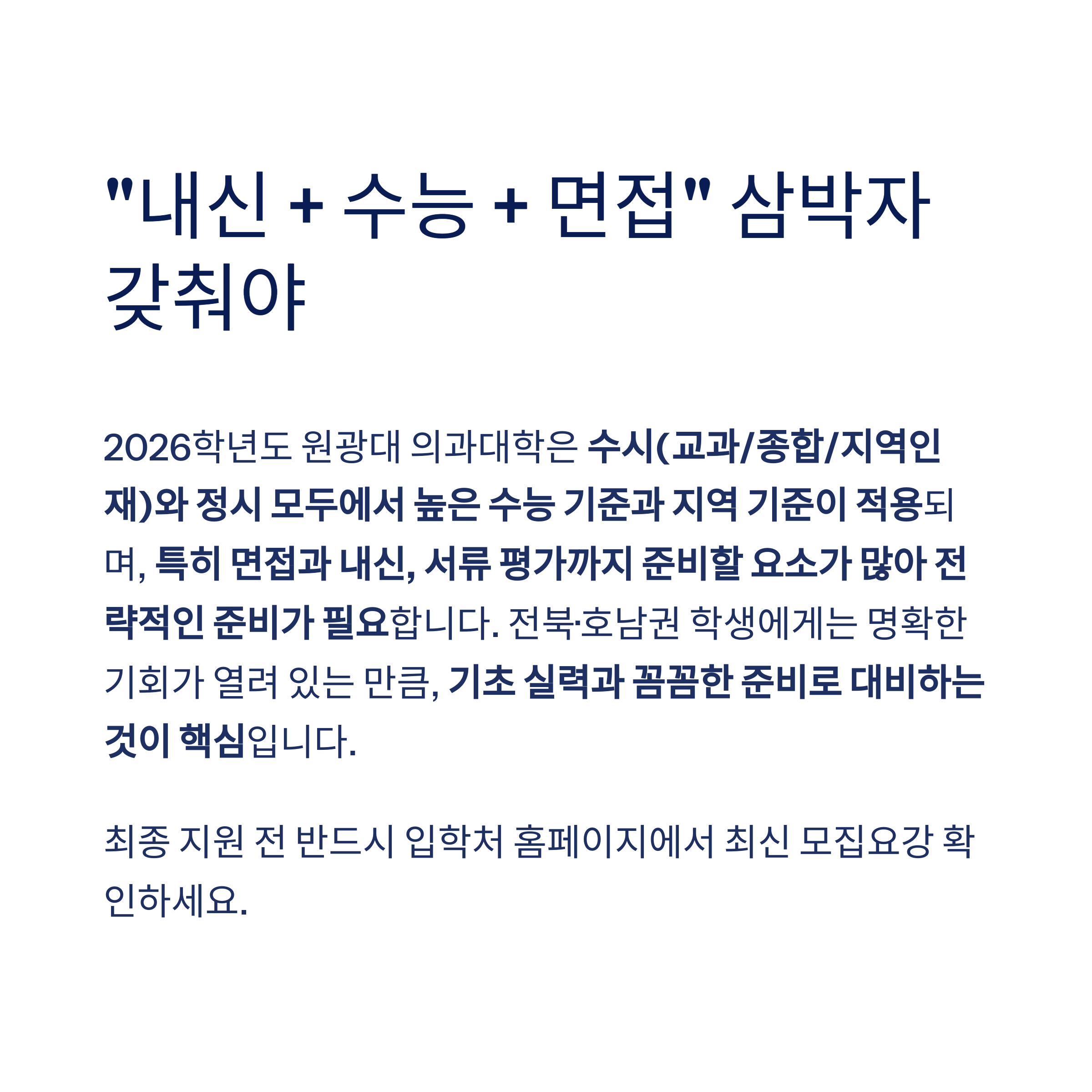전북·호남권 학생에게는 명확한 기회가 열려 있는 만큼, 기초 실력과 꼼꼼한 준비로 대비하는 것이 핵심입니다.