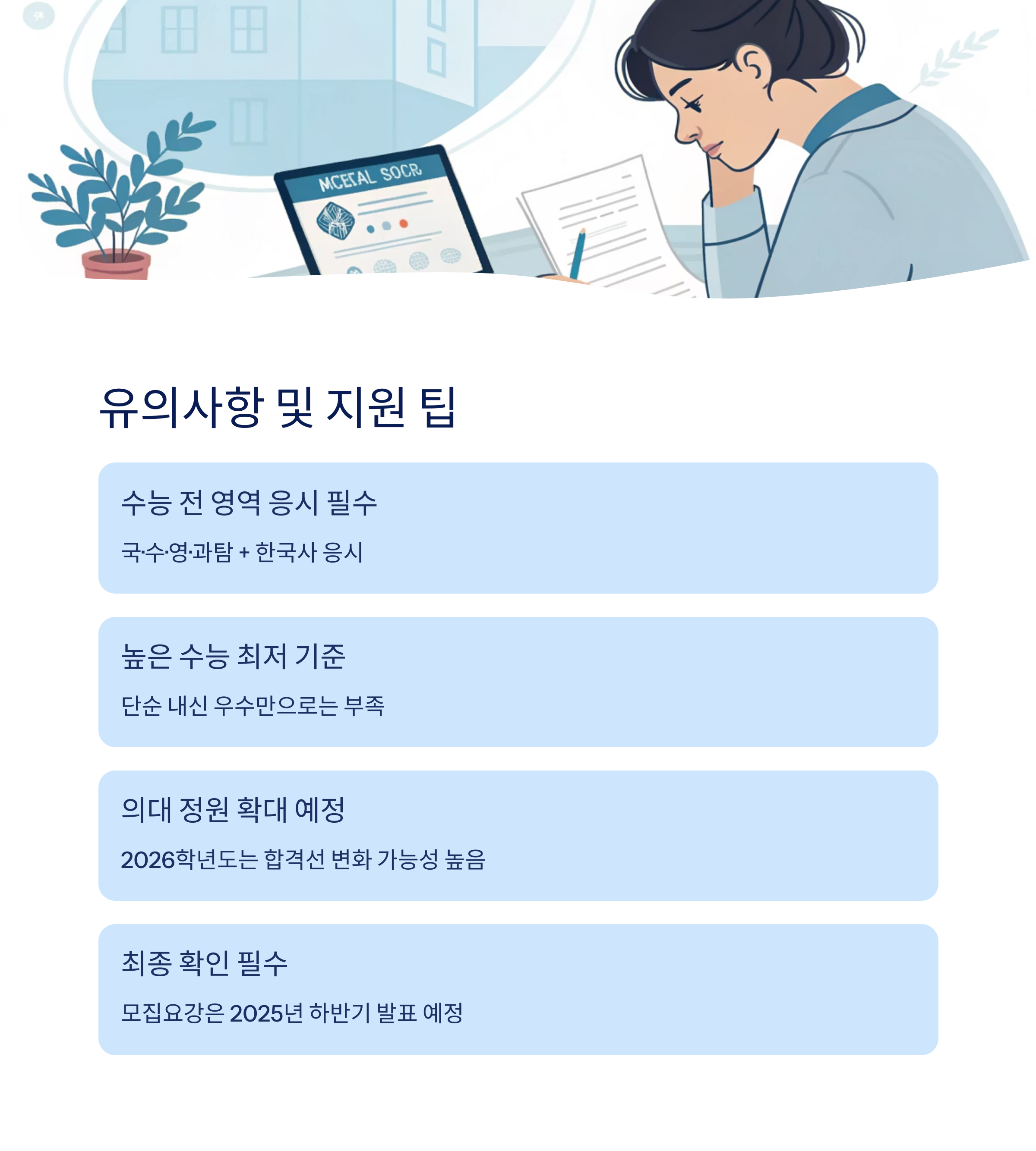 • 2026학년도는 의대 정원 확대 반영 예정: 합격선 변화 가능성 높음